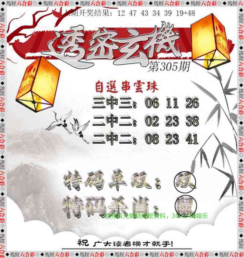 306期平特:【鸡】 306期二连:【鸡虎】【蛇狗】 306期三连:【鸡虎猪】【蛇狗牛】 |